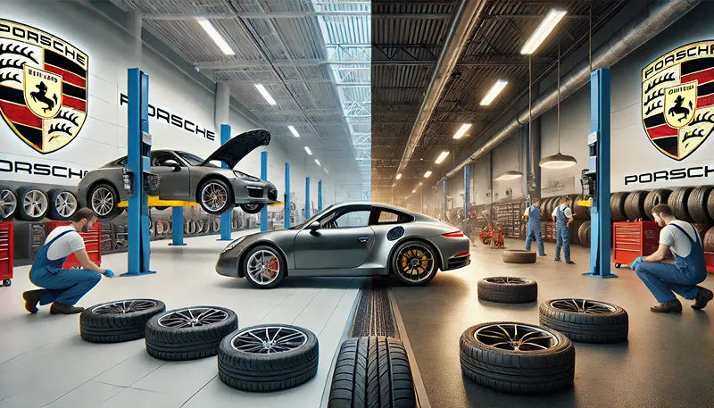 持ち込みの話とも関連しますが、ポルシェのタイヤ交換をどこで行うかは、オーナーにとって最も悩ましい問題だと思います。主な選択肢は「ディーラー(ポルシェセンター)」か「タイヤ専門店・整備工場」の2つですね。
