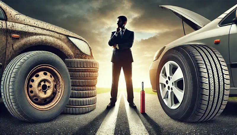 私自身の経験からも強く言えるのですが、中古車のタイヤ交換は、購入時にお店に「新品交換サービス」を付けてもらうより、購入後に自分で選んで交換する方がトータルで賢い選択になることが多いんです。(もちろん、無料で好きなタイヤに交換してくれるなら別ですが!)