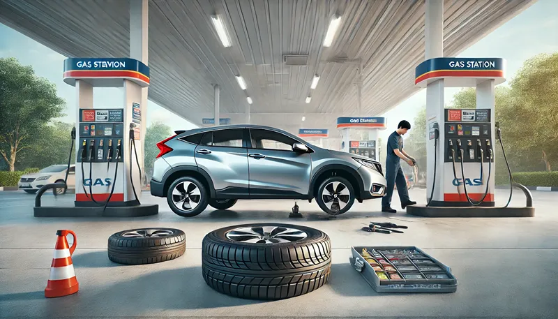 - ガソリンスタンドは急な交換にも対応できる利便性が魅力だが、タイヤの選択肢や専門性には注意が必要